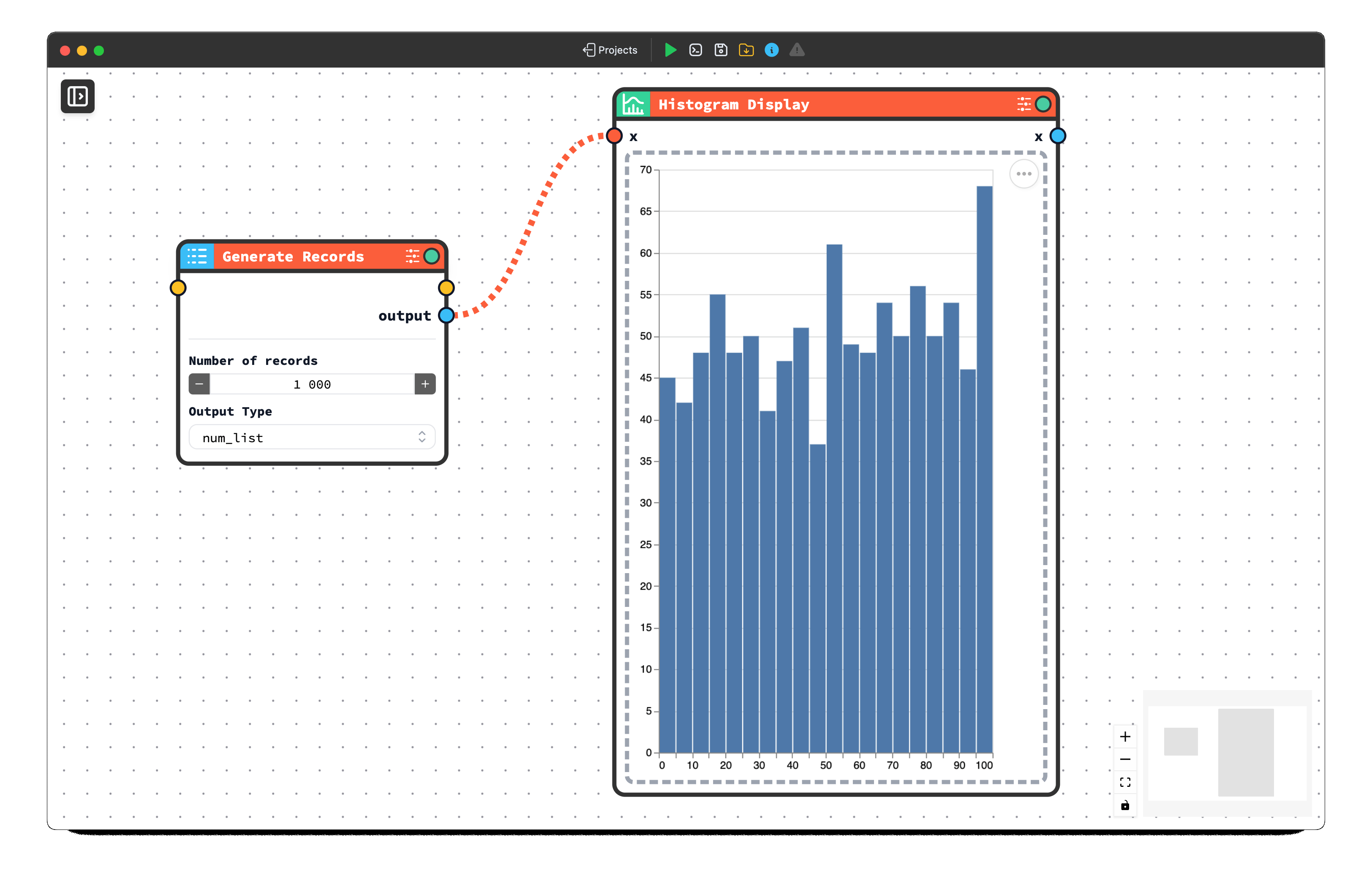 Graph Bricks are visual nodes that enable the display of Vega-Lite graphs, leveraging the capabilities of Vega-Lite to allow users to create a diverse range of graphs for various purposes and objectives. We assume you are familiar with the standards and properties of Vega-Lite.