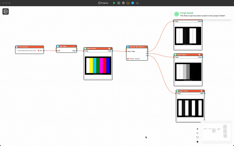 - (F) Save Script: Generates a standalone Python script equivalent of your visual flow.