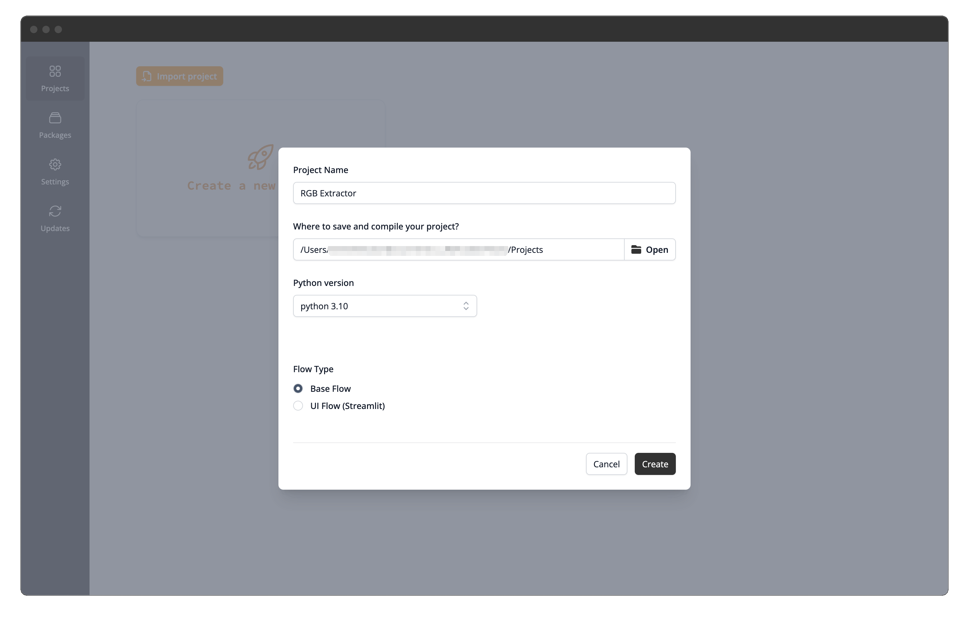 - Project Name: Enter a descriptive name for your project (e.g., "RGB Extractor").