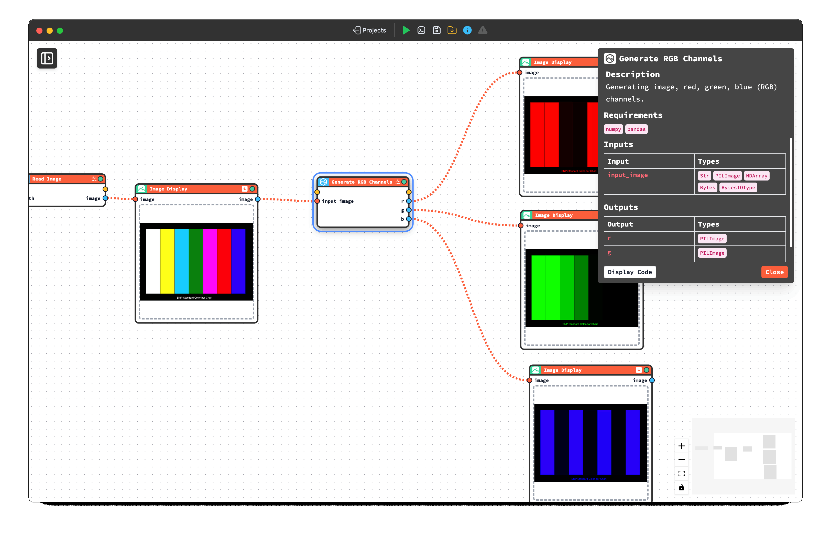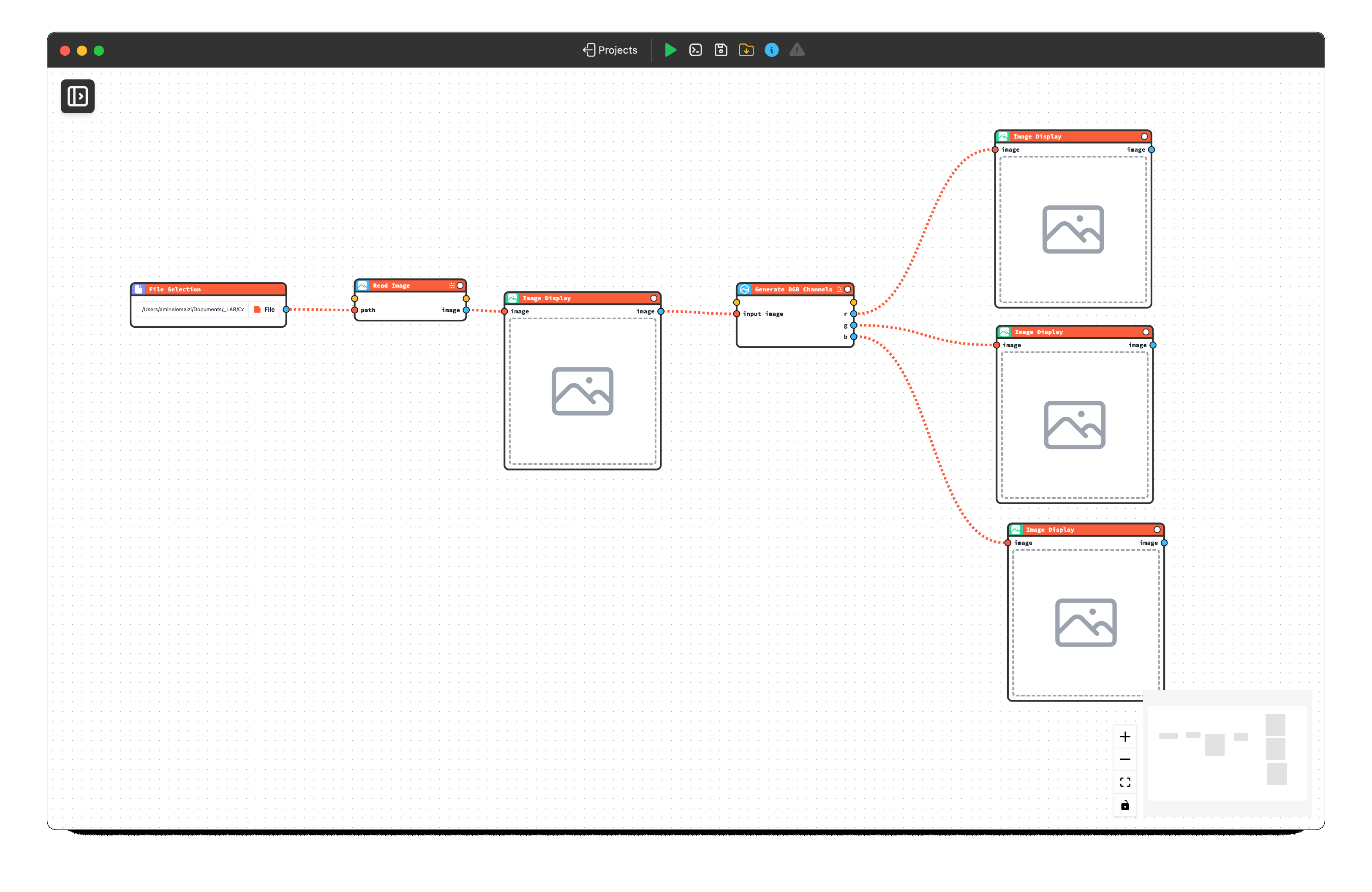 In this guide, we'll walk through creating a simple Base Flow example: extracting the Red, Green, and Blue (RGB) color channels from an image and displaying each channel in separate "Image" bricks within the CODED FLOWS environment.