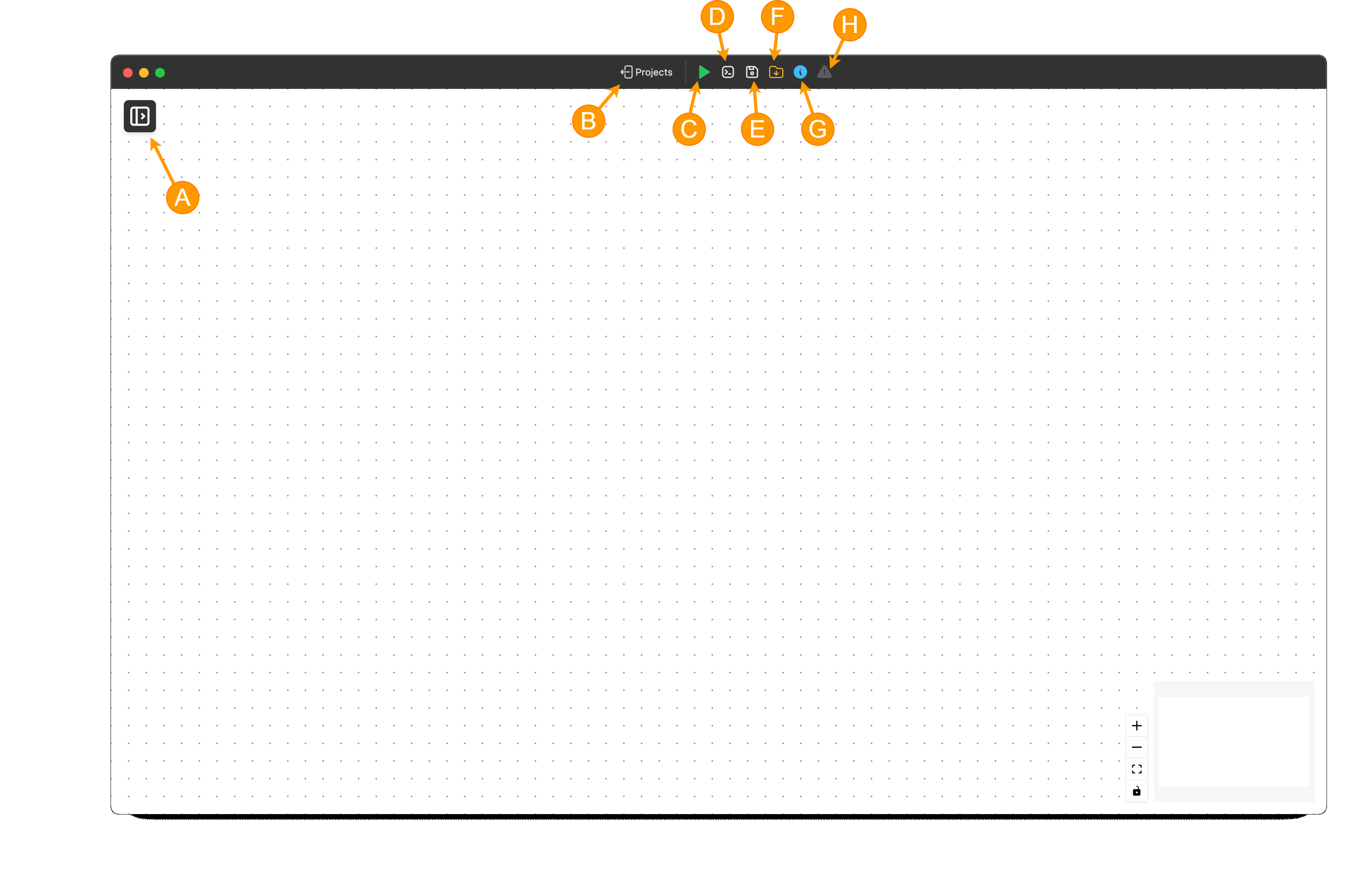 - (D) Logs: Opens a dedicated window or panel to display real-time execution logs for your flow.