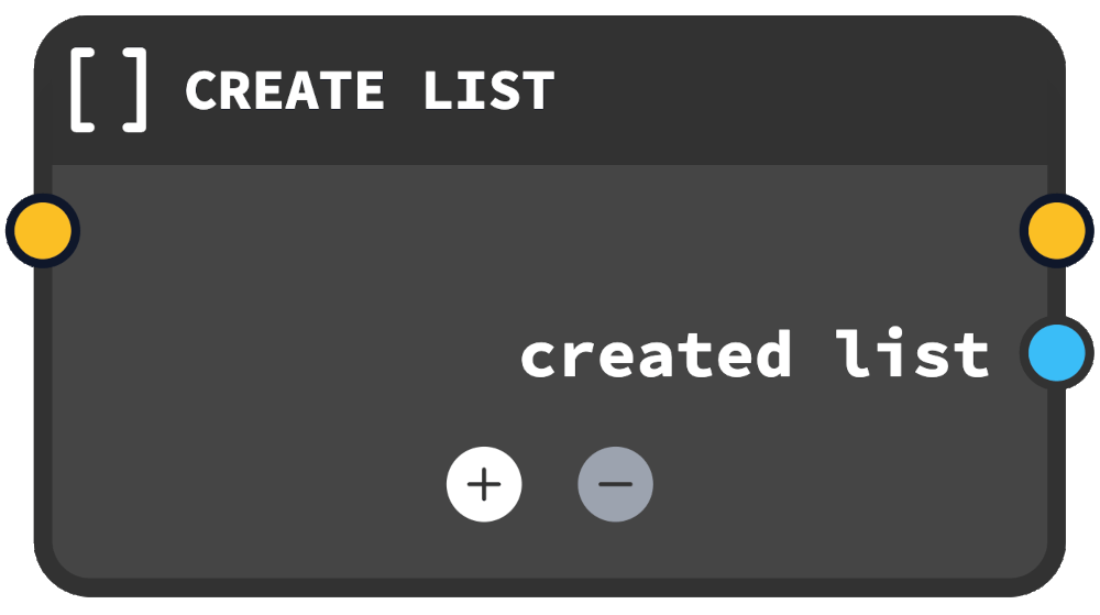 Creates an ordered list by connecting input arguments in sequential index positions. You can add a new list element by clicking on the plus button.