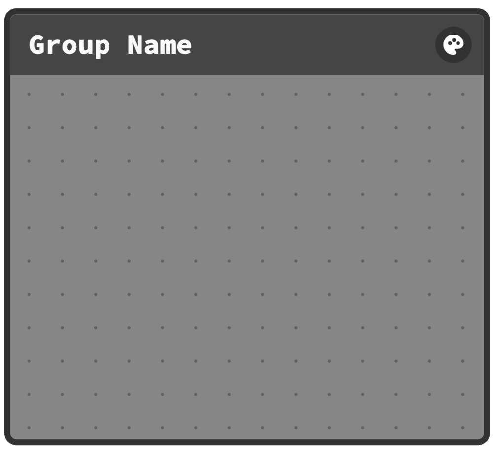 Visual grouping node used to organize related nodes with a title. This organizational tool helps structure your workflow by creating visual containers that group logically connected nodes together, making complex flows easier to understand and navigate. You can change the group's color by clicking the button on the top right.