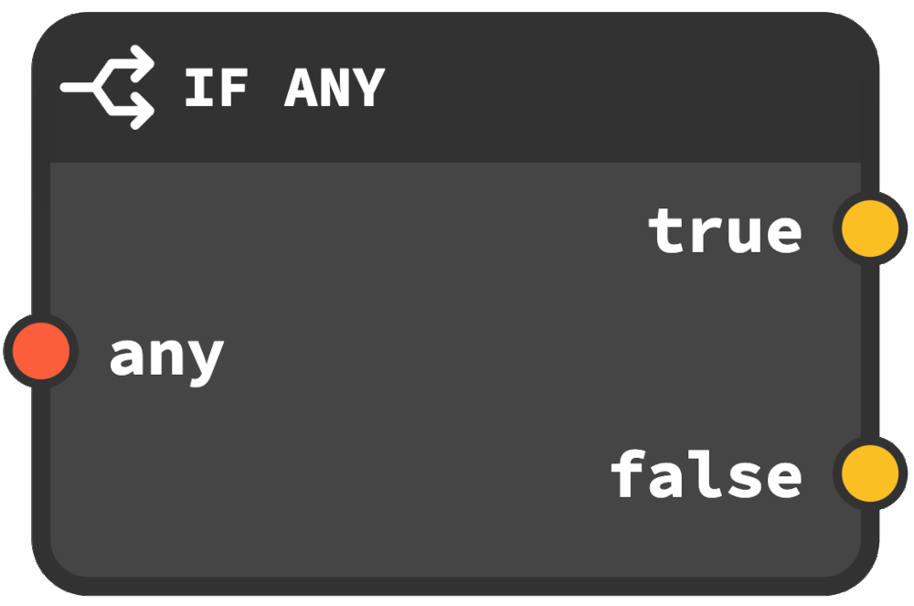 The IF ANY Brick evaluates whether a value has meaningful content, returning True if the value contains data and False if it's empty or None. Unlike the standard IF Brick that works with boolean conditions, IF ANY intelligently handles various data types and determines their "truthiness" based on content presence.