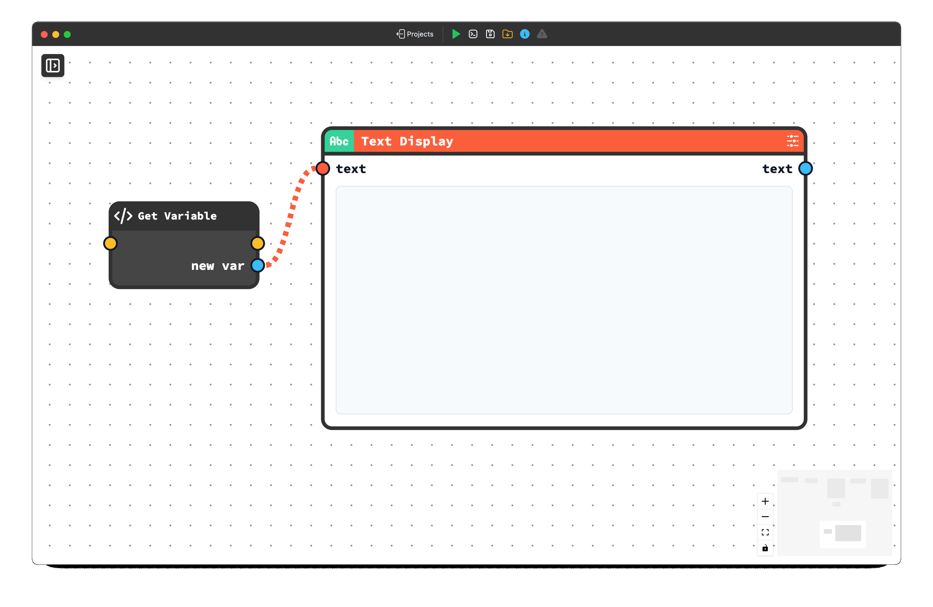 The Get Variable brick retrieves the current value of an existing variable for use in the flow.