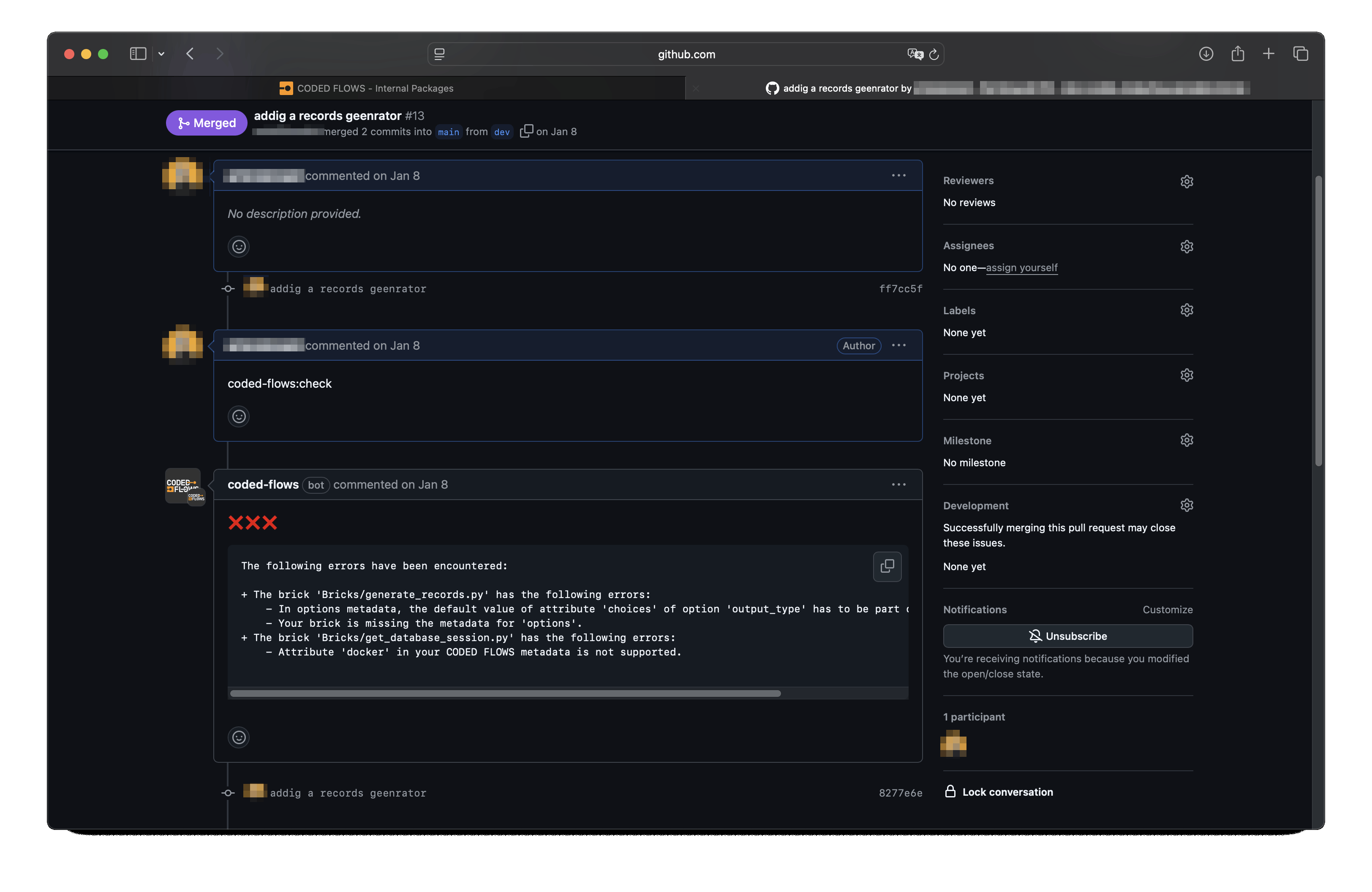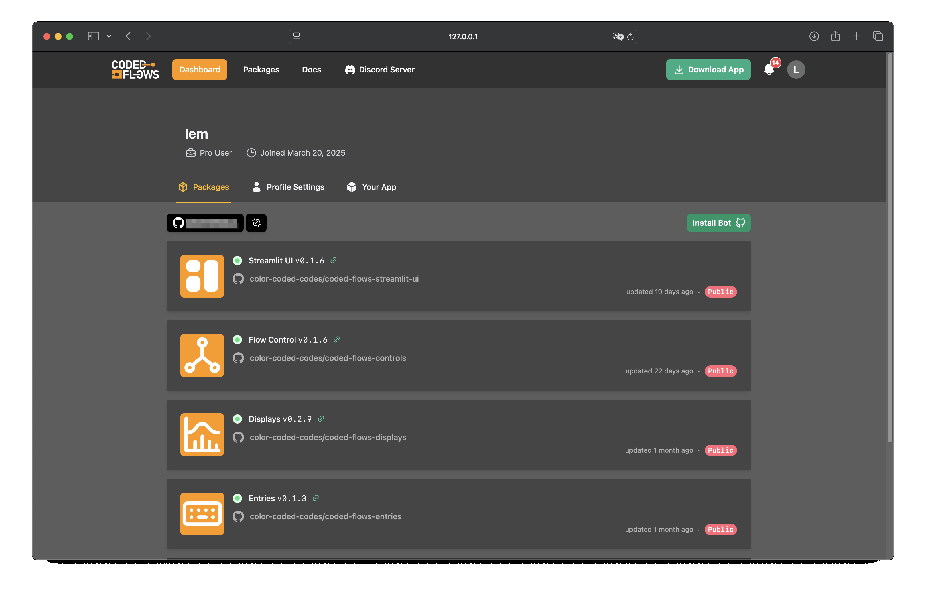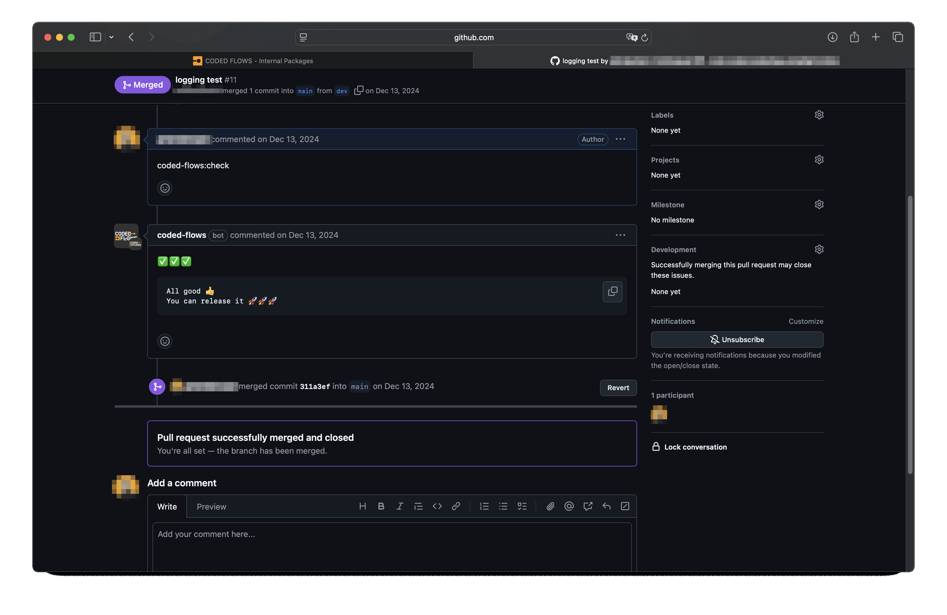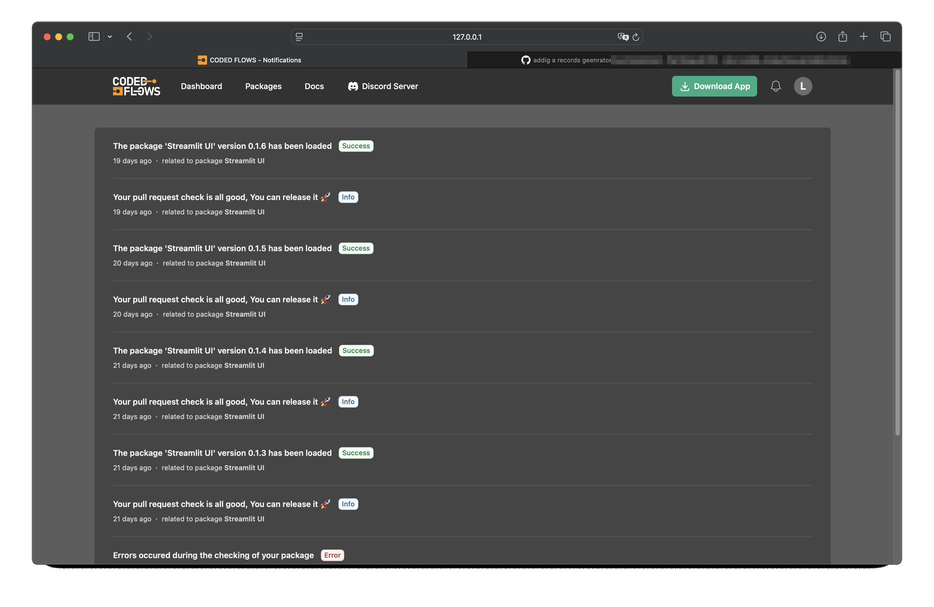 We provide a GitHub bot that connects your repository to our platform and assists with validating your package before release. You can install this bot from the internal packages interface at https://codedflows.com/accounts/packages/.